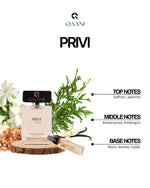 Privi is a luxurious fragrance crafted for the modern man who commands attention with quiet strength and effortless style. It begins with an alluring blend of saffron and jasmine, offering a refined and captivating opening that speaks of elegance from the very first impression.